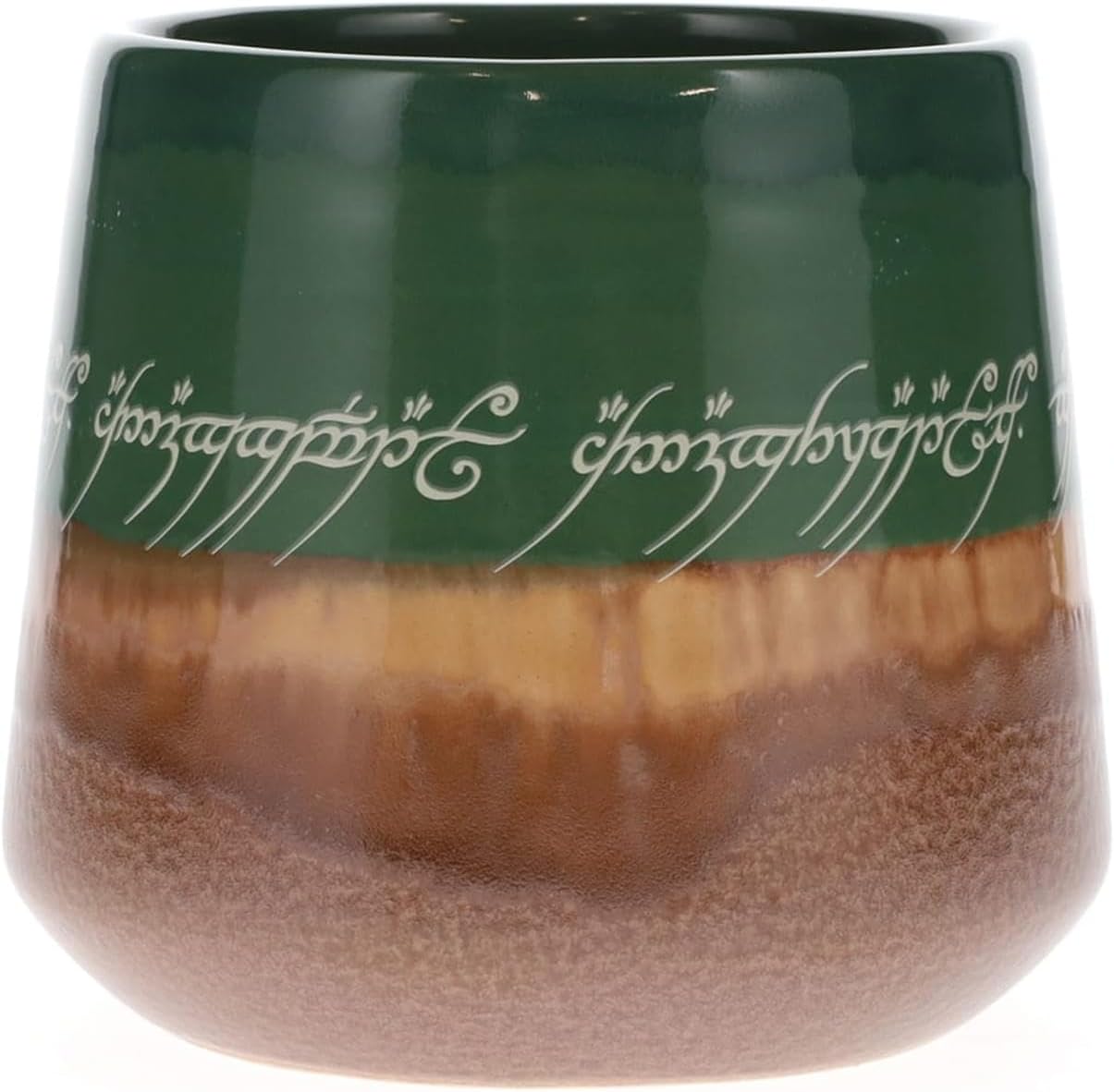 PREMIUM DESIGN: Crafted from durable ceramic in a rich earth-tone glaze with elegant Elvish script, this tapered pottery mug holds 18 ounces and features a high-gloss reactive glaze finish